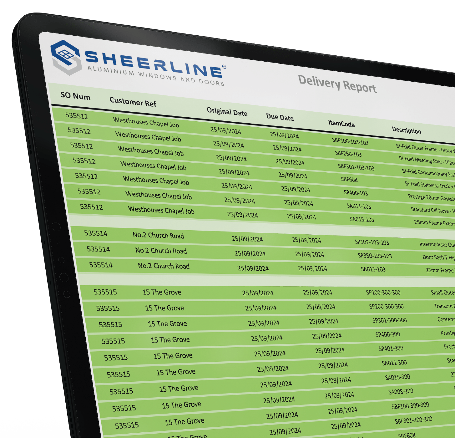 That’s why all Sheerline orders come with an itemised delivery report, giving full visibility of what’s going to arrive, by job. We send these delivery reports to fabricators the day before the delivery is due, giving them time to rearrange their production plans if required – but with an OTIF that runs northwards of 99.4%, that doesn’t happen very often.